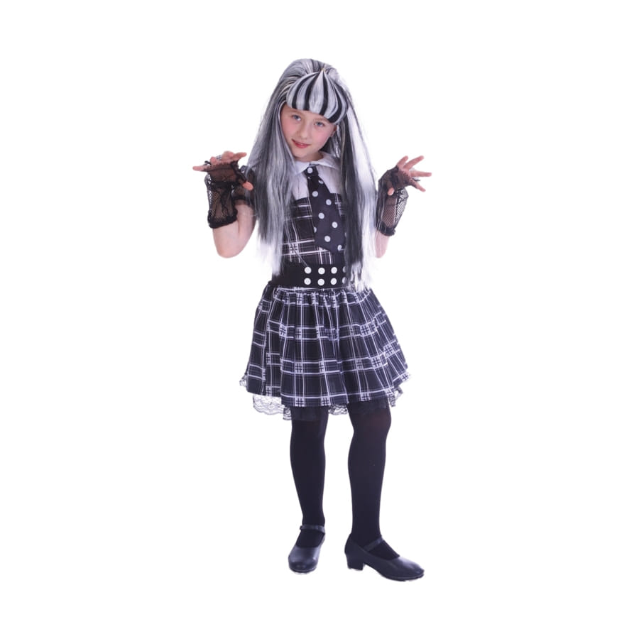 Le merveilleuse Frankie Stein a tout d'une vraie fashionista ! Malgré ses points de sutures et ses boulons, elle fait partie des plus belles créatures de Monster High. Les petites filles l'adorent littéralement ! C'est pourquoi elles peuvent opter pour le déguisement de Frankie à Halloween. Ce costume sous licence Monster High est composé d'une robe, d'une ceinture et d'une paire de gants, le tout de couleur noire et blanche, les couleurs préférées du personnage ! L'ensemble vous sera livré sans perruque. Plusieurs tailles sont disponibles : pour les 4 à 6 ans, pour les 7 à 9 ans, ou pour les 10 à 12 ans. Avec ce déguisement, votre fillette sera la plus stylée de tous les monstres !