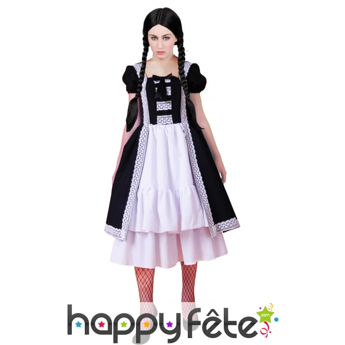 Vous vous la jouerez mystérieuse, troublante dans ce déguisement de Gothique. Si vous adorez porter des couleurs vives le temps d'une journée au carnaval ou même durant Halloween métamorphosez-vous en gothique, vos amis ne vous reconnaitrons pas. Ce déguisement existe en deux tailles: 38/40 et 42/44. Il est composé d'une robe avec de la dentelle sur le coté, d'un petit nœud en ruban au centre. Il est aussi composé d'un jupon.