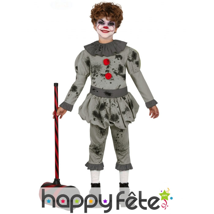 Effrayant et sombre, le costume gris de clown tueur ensanglanté, enfant à tout pour plaire.