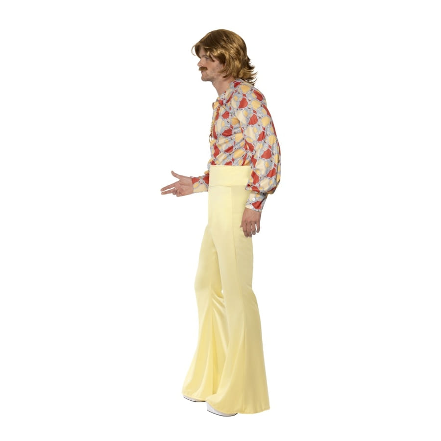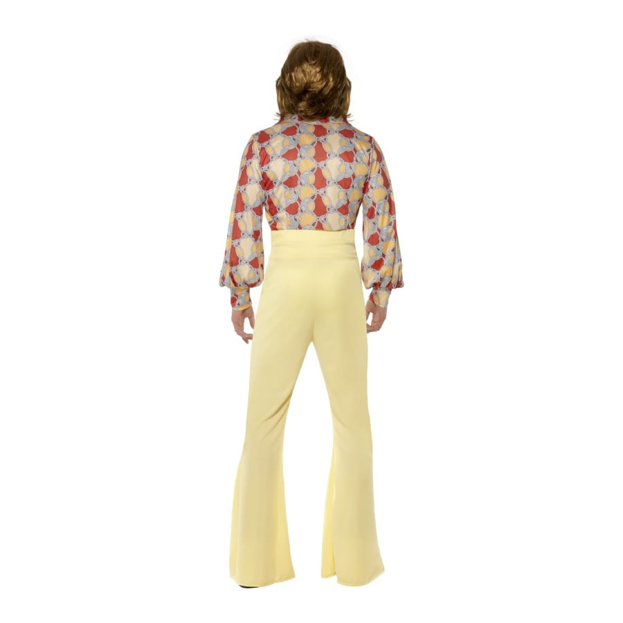 Pour un look groovy, prenez cette chemise multicolore et ce pantalon crème. Cet ensemble est disponible en taille L, M ou XL. Il est parfait pour une soirée disco et paillettes.