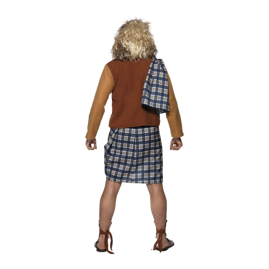 Déguisement d'Ecossais, pour homme, composé d'un tartan, d'un top, d'un kilt et d'un couvre-chevilles. Cet ensemble blanc, bleu et marron vous permettra de vous déguiser en fou écossais.