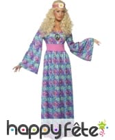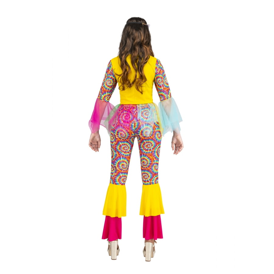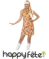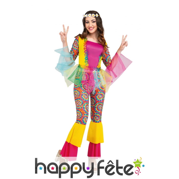 Retour dans les années 50 et 60 pour vivre la mode hippie grâce à ce Costume hippie arc en ciel avec tulle, femme.