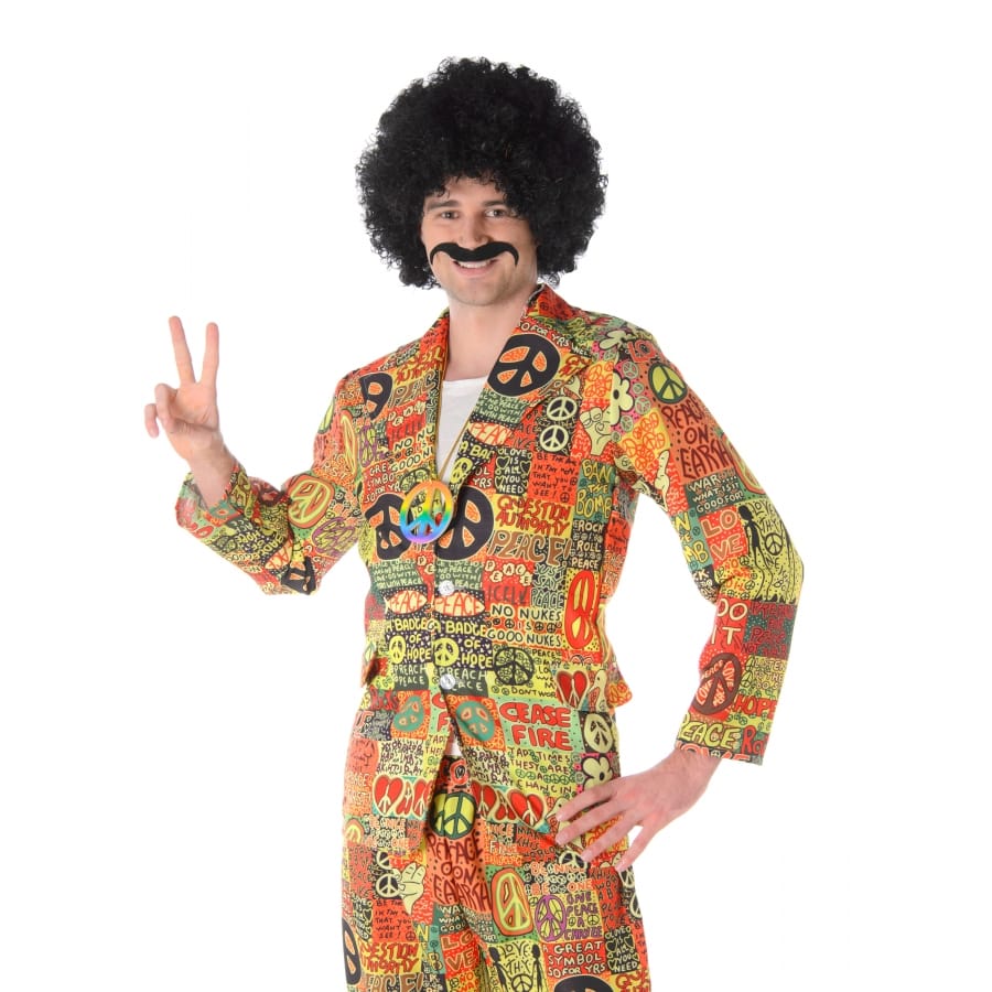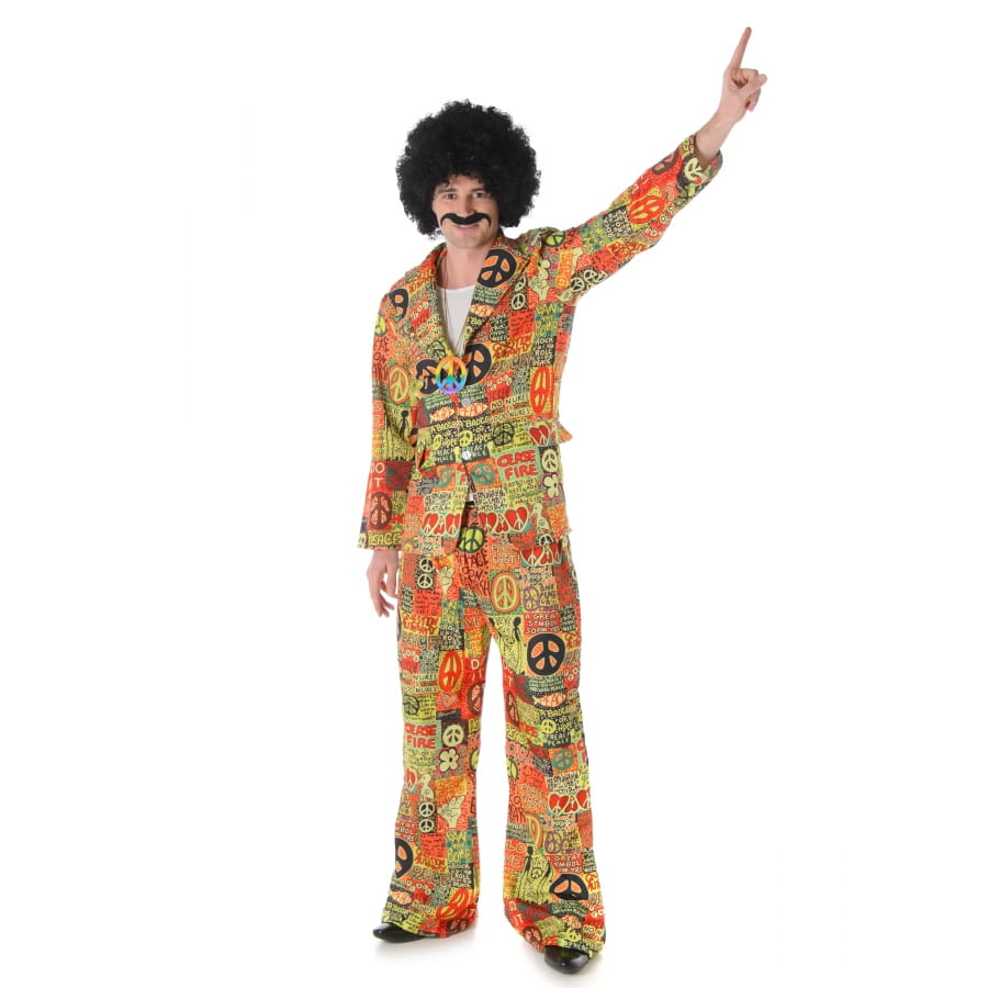 Pour bien préparer votre soirée sur le thème des années 60-70, ne passez pas à côté de ce costume hippie peace and love coloré pour homme.