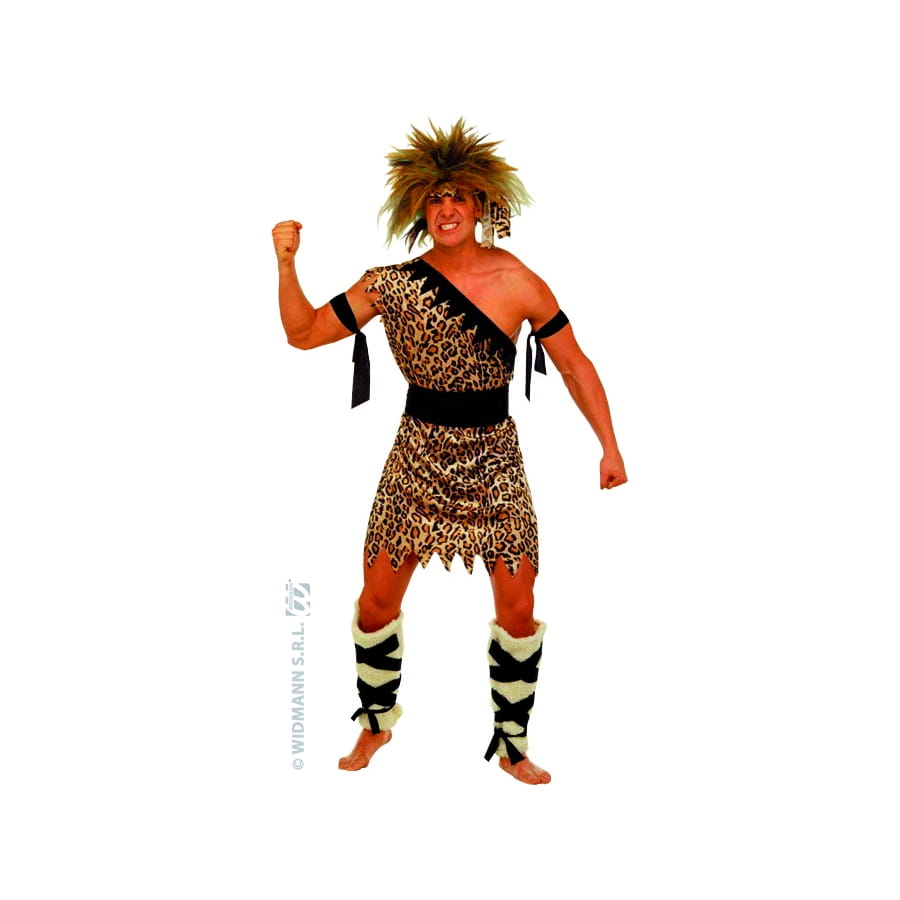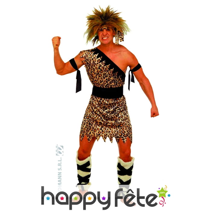 Pour le carnaval , replongez-vous en arrière au temps de la guerre du feu avec ce déguisement primitif de taille L. Ce costume est composé d'une tunique de couleur beige, marron et noir il y a aussi une ceinture, des jambières avec lacets, d'un serre-tête et de bandeaux de bras. Monsieur, vous serrez un véritable homme des cavernes.