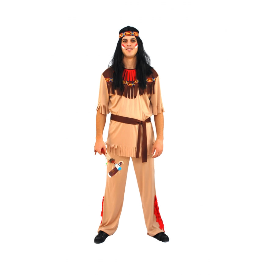 Plusieurs huttes autour d'un feu, des hommes et des femmes aux cheveux longs qui font une danse qui est aussi spéciale que leur accoutrement. Voilà une belle image typique de nos amis les Indiens, que beaucoup de personnes rêveraient de voir un jour. C'est à cet égard que nous vous proposons justement ce déguisement Indien Grande flamme pour homme, qui pourrait vous transporter au coeur même de cette scène, si votre imagination vous le permet. La tenue, elle, vous le permettra parce qu'elle représente à elle seule cette culture magique qu'est celle des Indiens, elle est formée d'une tunique beige où vers l'encolure on peut trouver une décoration en rouge, marron et un petit motif aztèque, d'une ceinture marron, d'un pantalon beige avec la même décoration rouge sur le côté, et d'un bandeau avec le même motif aztèque également. Tailles disponibles : 50-52/54-56/58-60 (dimension en cm entre les deux épaules).