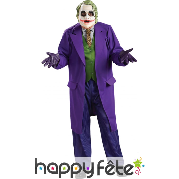 Set de déguisement de cinéma sous licence, pour homme, composé d'une longue veste violette et d'un masque de joker pour adulte.