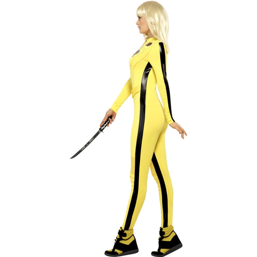 Un costume unique pour être l'héroïne du jour et marquer un évènement. Voici un déguisement de ninja représentant l'héroïne du film Kill Bill. Il s'agit d'une combinaison de couleur jaune avec une bande noire sur le côté, et d'une épée comme accessoire. Ce style de costume a aussi été porté par Bruce Lee dans le célèbre film « le jeu de la mort ». Proposé en taille M, ce qui correspond à la taille d'une robe 40-42 et en taille S qui correspond à un 36-38. Concernant l'entretient de ce costume, nous conseillons le nettoyage à sec.