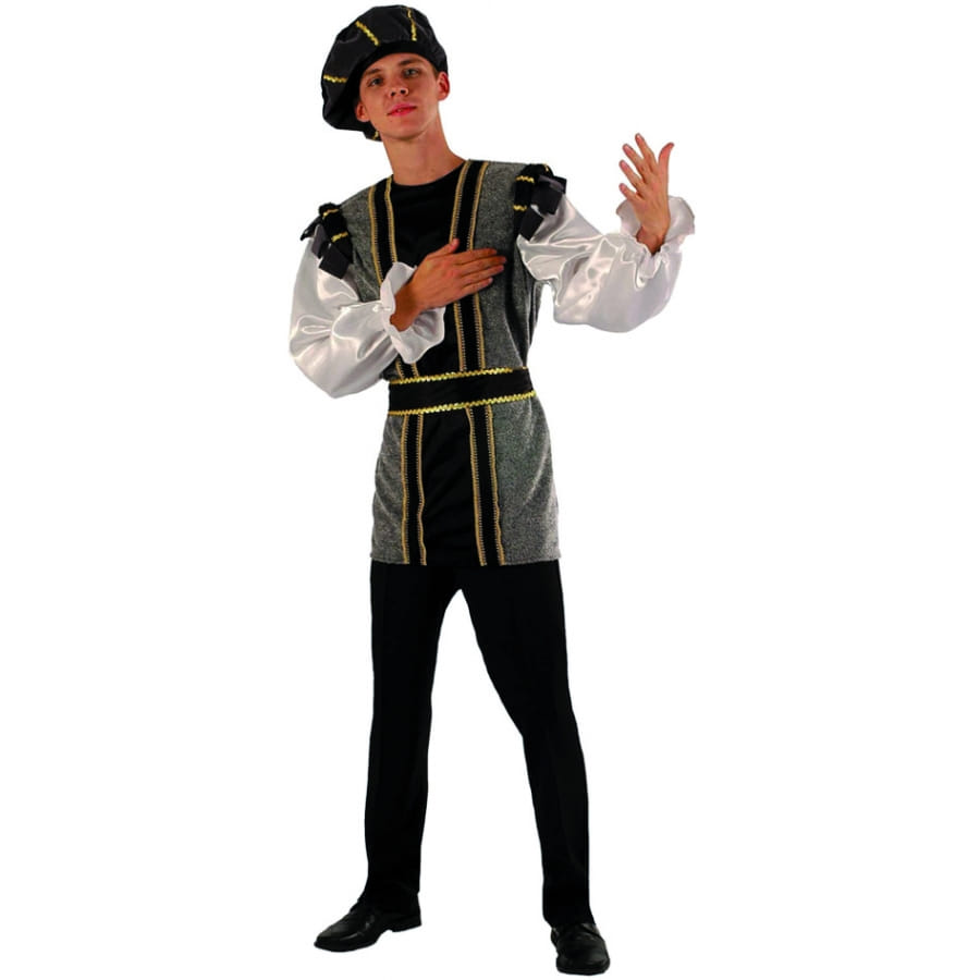 Dans ce costume de Roméo de ces dames vous aurez un charme fou, en véritable séducteur et très élégant dans ce costume vous aurez plusieurs conquêtes. Ce costume vous pourrez le revêtir lors d'une fête à thème comme l'histoire ou vous serez un parfait charmeur. De couleur blanc, gris noir, or et bronze, cet ensemble est disponible en deux tailles:50/52 et 54/56. Il est composé d'une tunique, d'une ceinture, d'une coiffe et d'un pantalon.