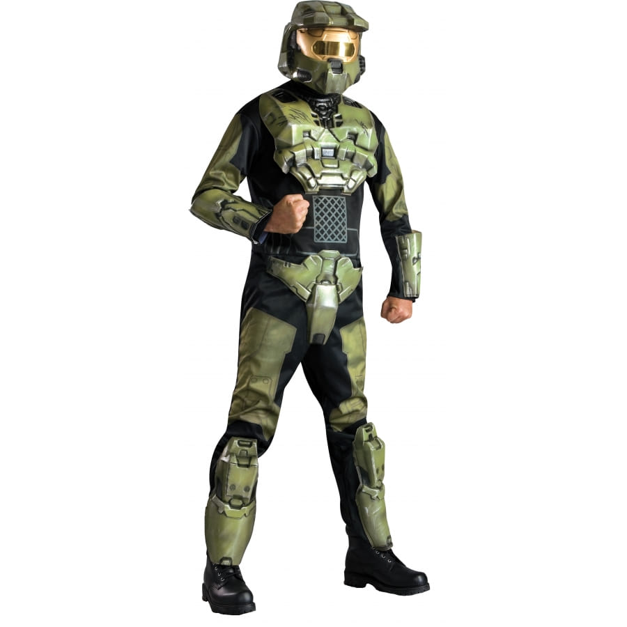Il n'y a aucun gamer qui ne connaisse pas le jeu vidéo Halo. Mais même les plus curieux d'entre nous n'ont jamais vu le visage de John S-117 ou Master Chief. Alors pourquoi ne joueriez-vous pas ce rôle? Avec cette combinaison sous licence Halo Master Chief munie d'une armure en E.V.A au niveau du torse, des poignets et de la ceinture, ce casque qui recouvre tout le visage et ces couvre-bottes en E.V.A, tous assortis avec la tenue originale en noir et vert, personne ne se doutera que le rôle de Master Chief n'ait été conçu pour vous. Avec cet ensemble, l'intelligence et la force de ce guerrier hors norme seront en vous et vous serez à même de continuer à commanditer ses missions avec succès.