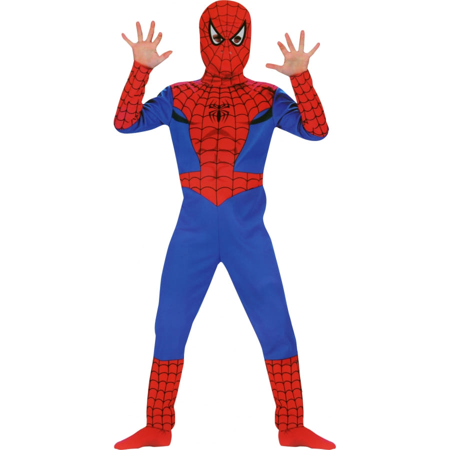 Costume de Spiderman sous licence composé d'une combinaison et d'une cagoule bleues et rouges. Cet ensemble est disponible pour enfants de 3 à 5 ans, 5 à 7 ans ou 8 à 10 ans. Amusez-vous à transformer votre enfant en super-héros!