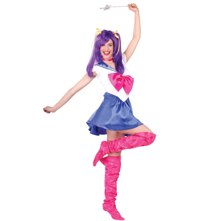 Ce Costume manga d'écolière magique est composé d'une robe, d'un ras de cou et d'une paire de sur-bottes.