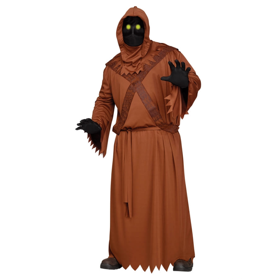 Il comprend une longue robe, une capuche, des faux yeux et des gants.
