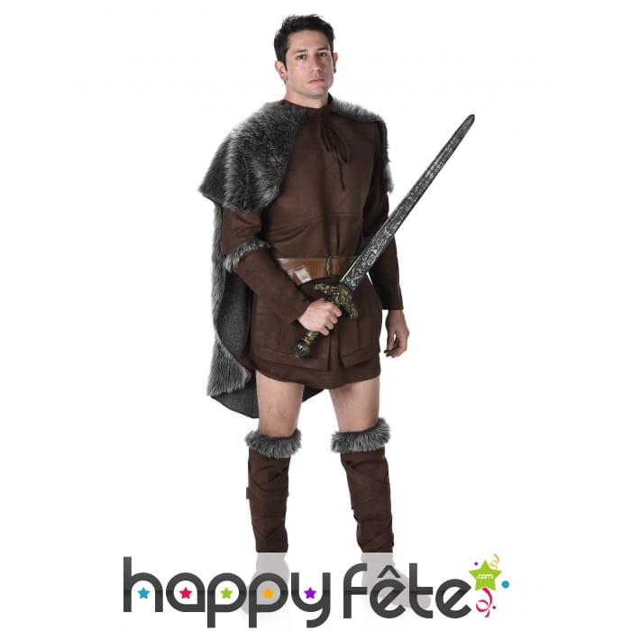 Incarnez un valeureux guerrier avec ce Costume marron de viking avec cape grise fait dans un tissu effet suédine.