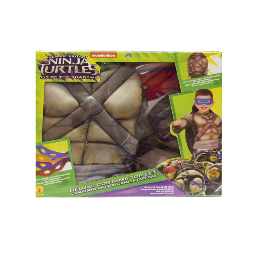 Le costume musclé pour enfant tortue ninja contient un haut de luxe, une carapace et 4 loups de couleurs différentes (chaque loup représente l'un des super héros).