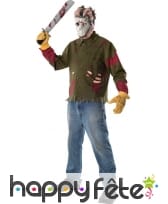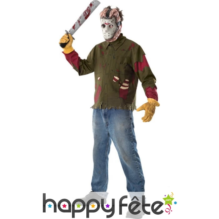 Le Vendredi 13 reste la date la plus redoutable dans l'histoire des horreurs. De ce fait, il obtient naturellement sa place parmi les concepts relatifs à halloween. Si l'idée vous tente, nous avons le déguisement sous licence officielle Jason (Vendredi 13) disponible sur notre site. Il s'agit du Costume officiel de Jason, Vendredi 13. Il se compose d'une chemise verte et rouge. Elle affiche des motifs déchirés et des taches de sang sur son ensemble. D'ailleurs, les bords présentent des découpes pour un effet déchiqueté également. Le costume s'accompagne d'un masque de hockeyeur de couleur blanche virant au gris. Ce dernier est conçu dans de la mousse pour plus de réalisme.
