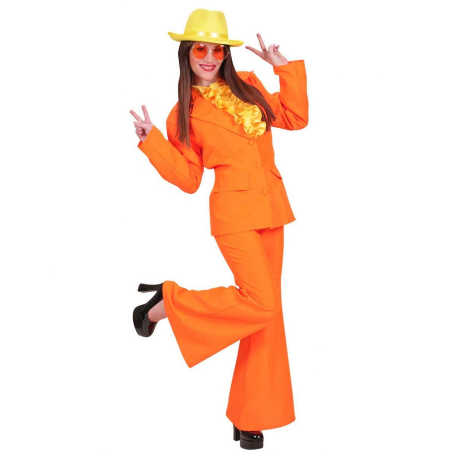 Le costume orange uni années 80 pour femme est un ensemble de 2 pièces.