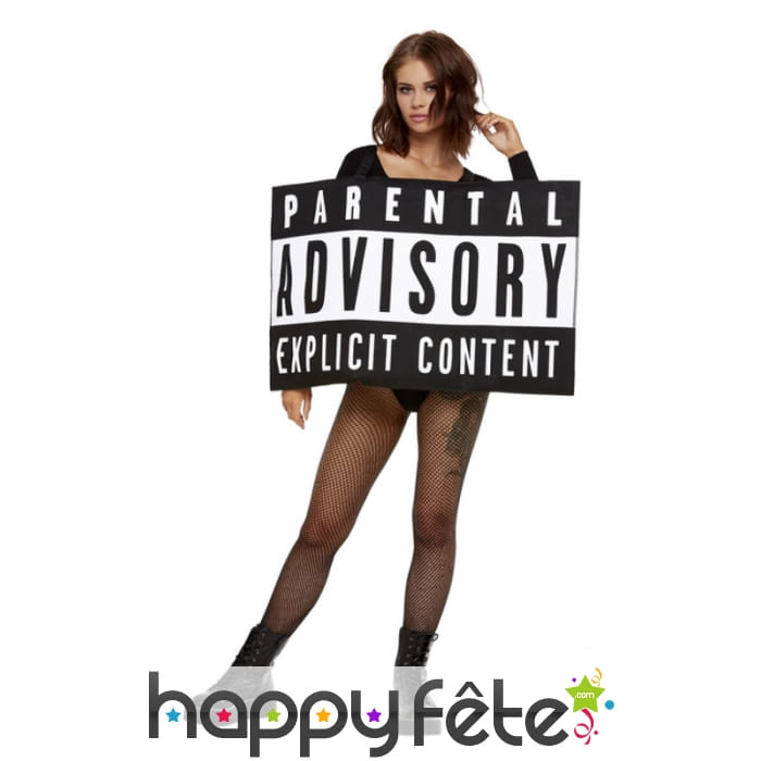 Drôle simple et pratique, ce Costume Parental Advisory pour adulte sera parfait pour un enterrement de vie de jeune célibataire.