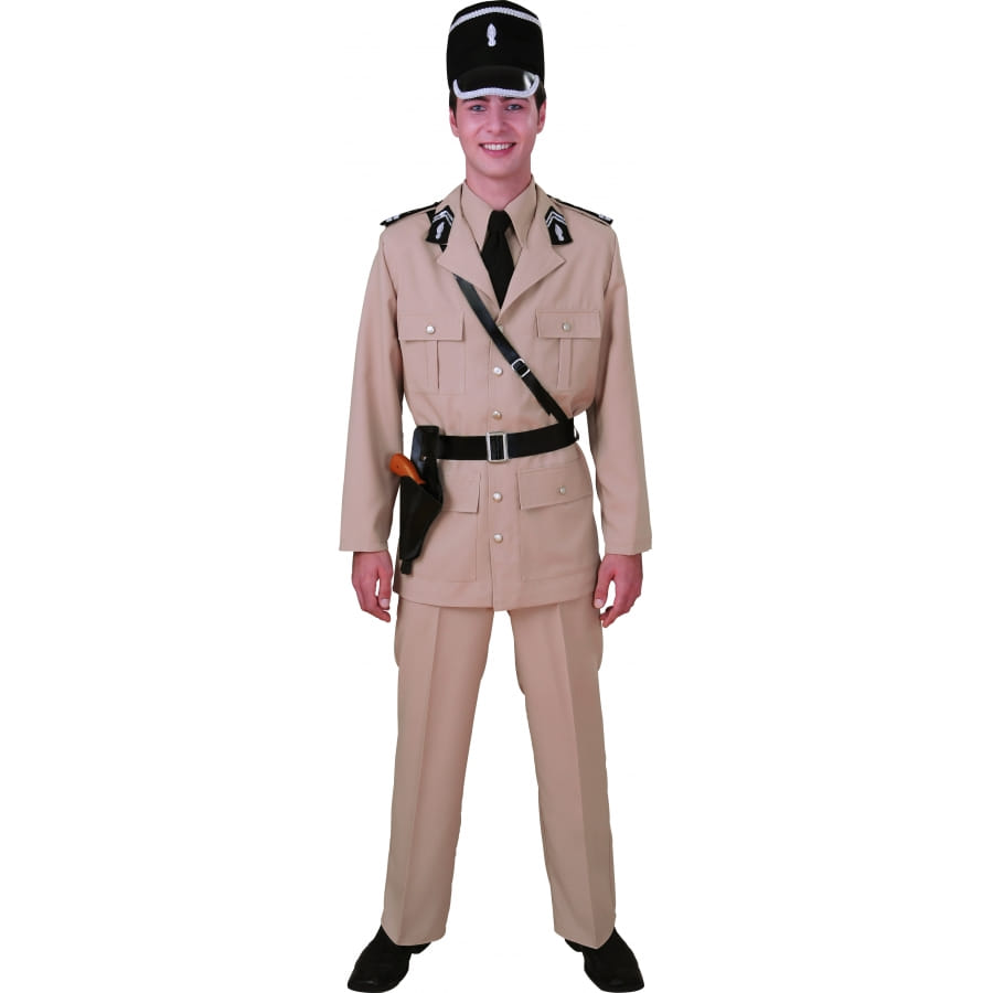Monsieur pour le carnaval devenez un policier de Saint Tropez, vous pourrez également le porter si vous allez à une fête ayant pour thème l'uniforme ou si vous voulez incarner un policier. Ce costume de belle qualité fera de vous un policier élégant et admirer de tous. Le costume est composé d'une chemise beige, d'une cravate noire, d'une veste avec beige et noir, d'un pantalon noir, d'un holster noir et de la coiffe noir avec des bordures argentés.
