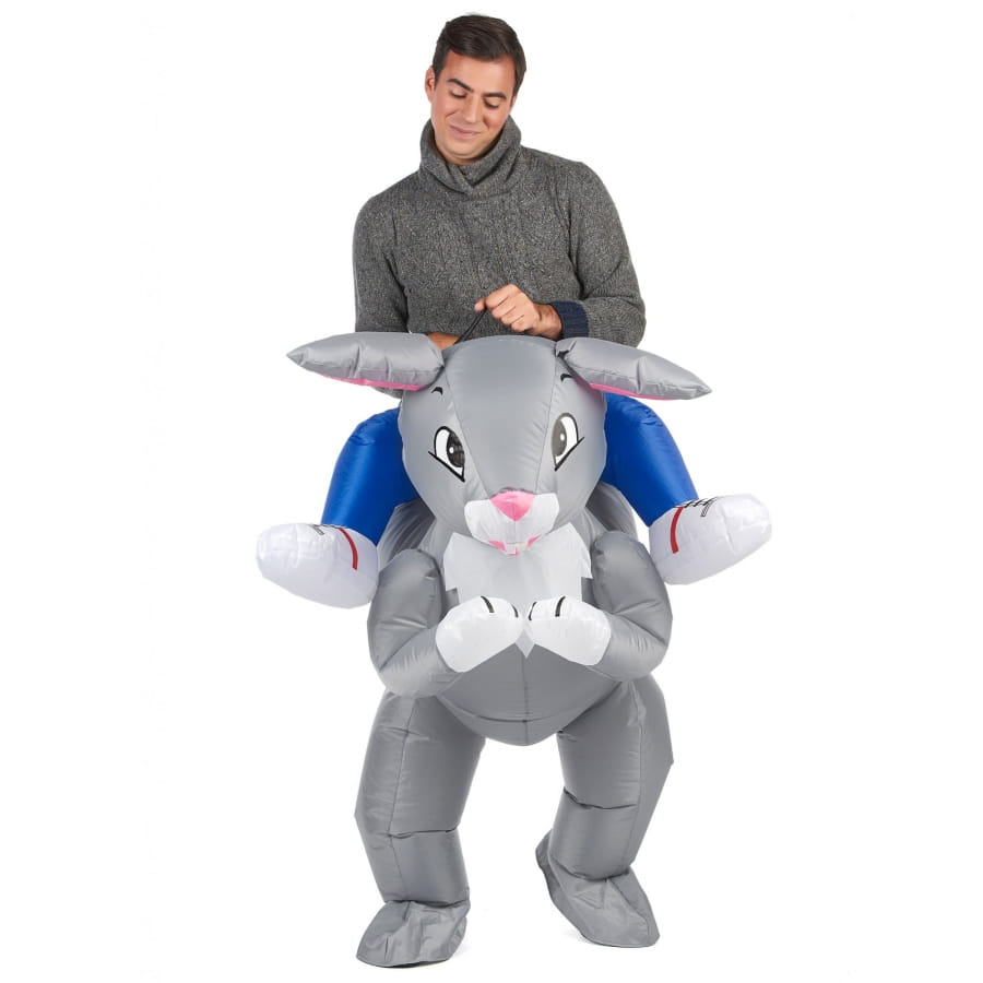 Ce sera le rire garantit pendant une soirée déguisée ou un carnaval avec ce costume Porte Moi gonflable lapin gris pour adulte.