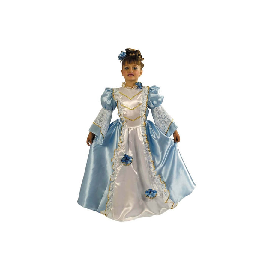 Toutes les jeunes filles rêvent un jour d'être une princesse. Grâce à ce déguisement issu des contes de fée, leur rêve deviendra réalité. Elles porteront merveilleusement cette très jolie robe de couleur bleue et blanche assortie d'une coiffe de même couleur. C'est un déguisement proposé en taille 140 et 152 cm.