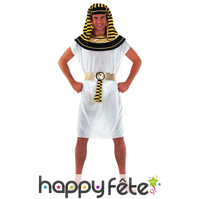 Tous les invités choisiront une tenue, notamment ce costume robe blanche de pharaon pour homme, représentant l'Egypte.