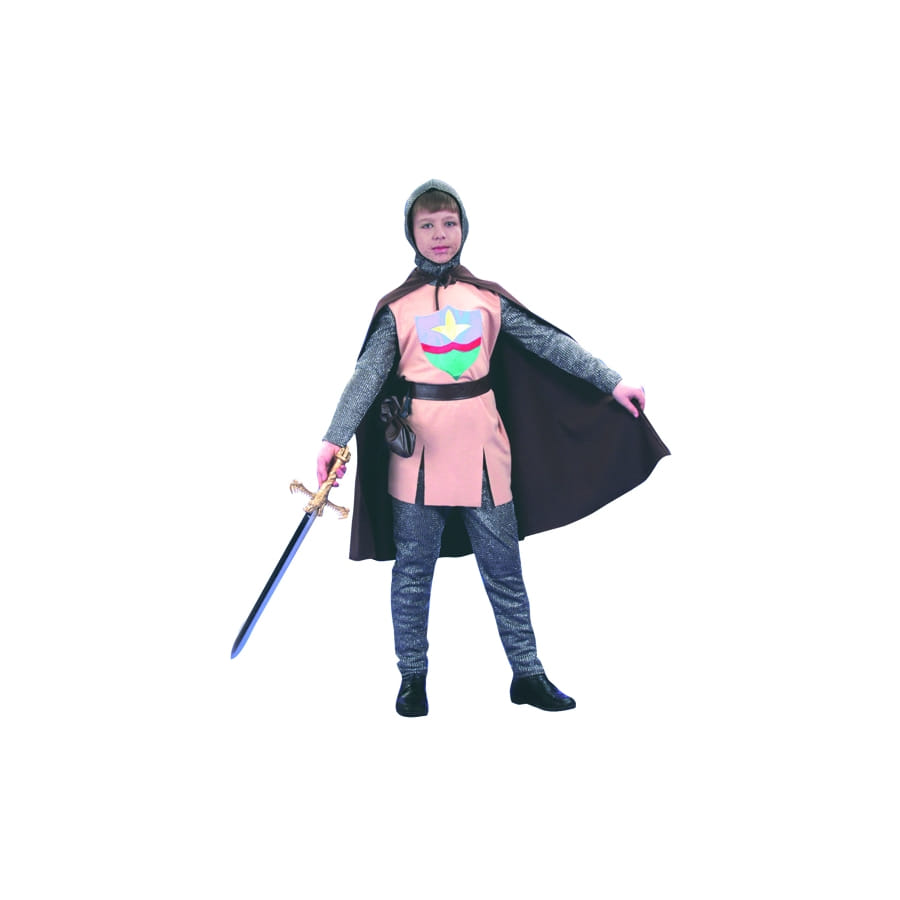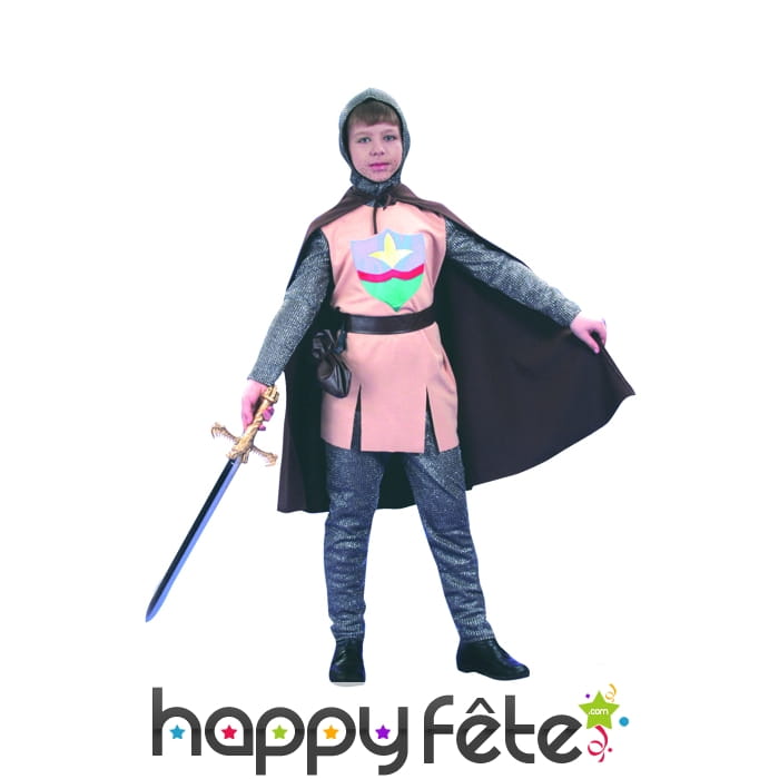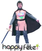 Il sera le seigneur et chevalier du temps médiéval dans ce déguisement. Ce costume complet est de bonne qualité. Il pourra le porter fièrement durant le carnaval ou meme une fete déguisée. Il se sentira comme un véritable chevalier en ce jour. Composé d'un pantalon gris, d'une tunique rose avec un emblème dessus, une cape grise, une coiffe grise, une ceinture et une bourse de la meme couleur.