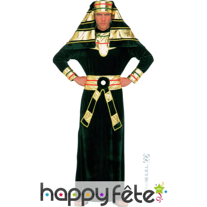 Envie d'un costume Royal? Optez pour celui-ci, il comporte une ceinture, un col, une coiffe et une robe en velours. Cet ensemble noir, doré et rouge est parfait pour incarner un roi d'Egypte pour un carnaval.