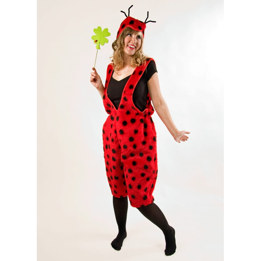 Nous présentons ici un costume de salopette de peluche coccinelle adulte.