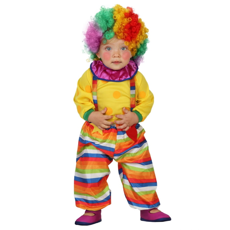 Décalé et comique, ce costume salopette multicolore de bébé clown va en surprendre plus d'un pendant un carnaval ou tout autre événement festif.