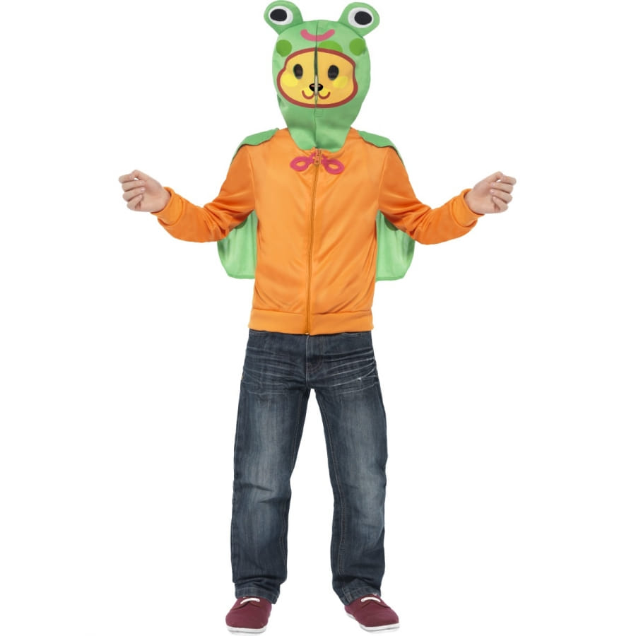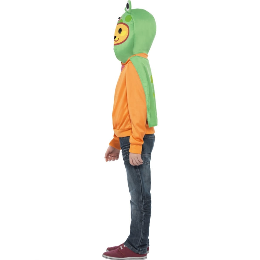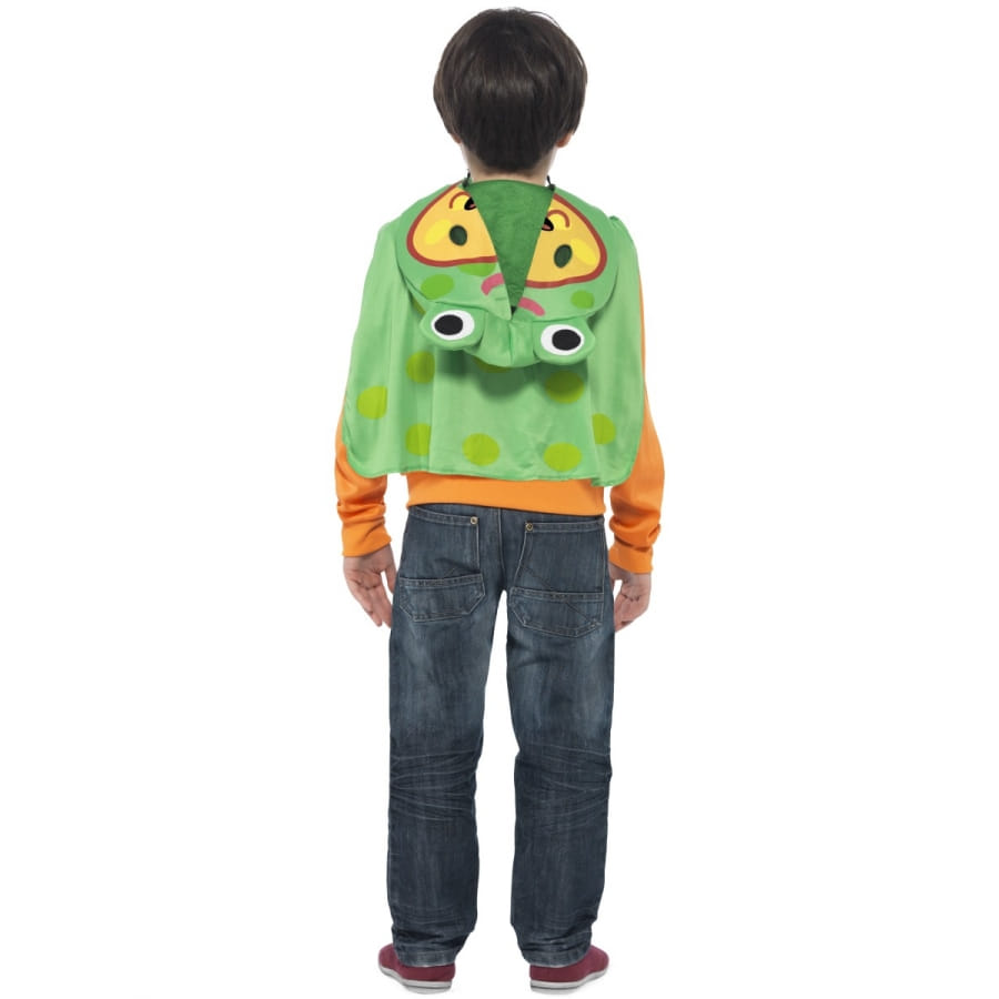 Un costume de Moshi Monsters scamp, assez particulier pour marquer halloween. Il est composé d'un pull à zip de couleur orange, d'une capuche en mousse, avec un zip, pouvant recouvrir la tête et d'une cape verte (détachable). La tête représente le Scamp Moshi Monsters avec son petit visage orange et son masque de camouflage vert décoré de petites oreilles. L'adorable costume Scamp Moshi Monsters est un déguisement mixte, disponible en couleur orange et vert. Pour l'entretient de ce costume, nous conseillons le nettoyage à sec.