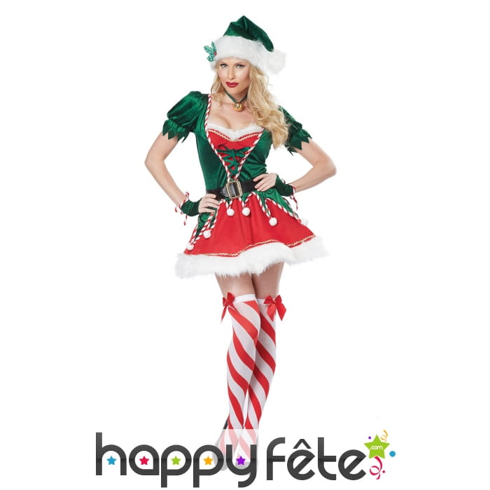 Vous serez la plus charmante des lutins de Noël, en revêtant ce costume sexy d'elfe du père Noël pour femme.