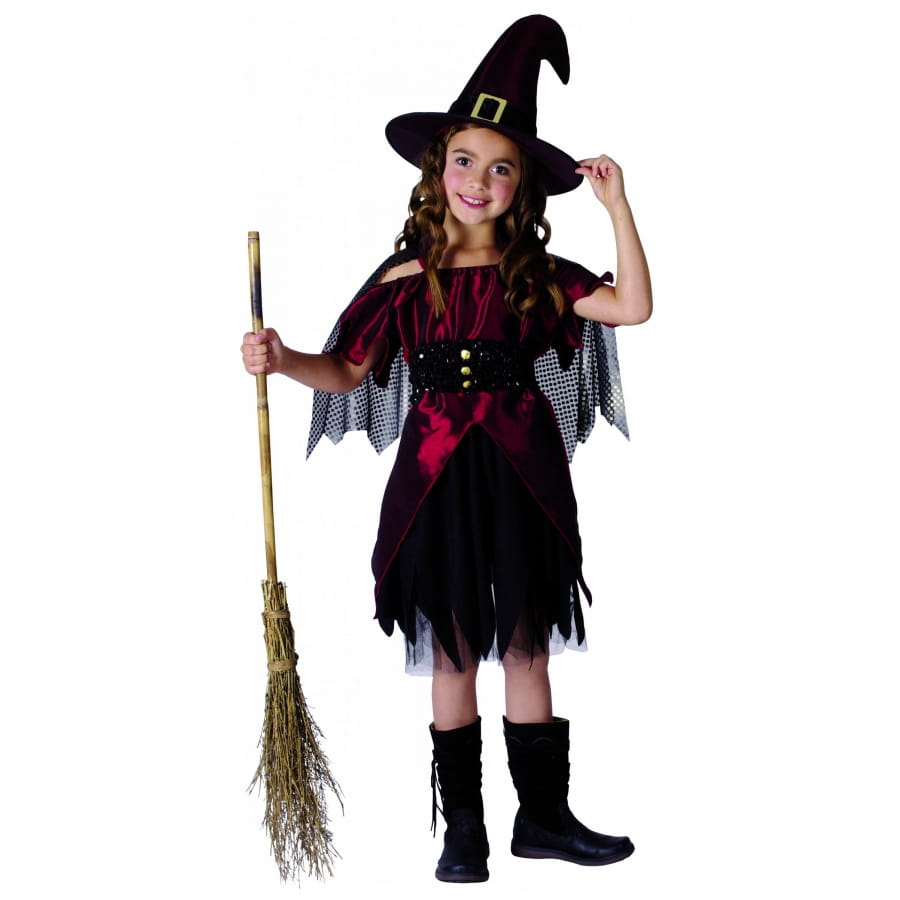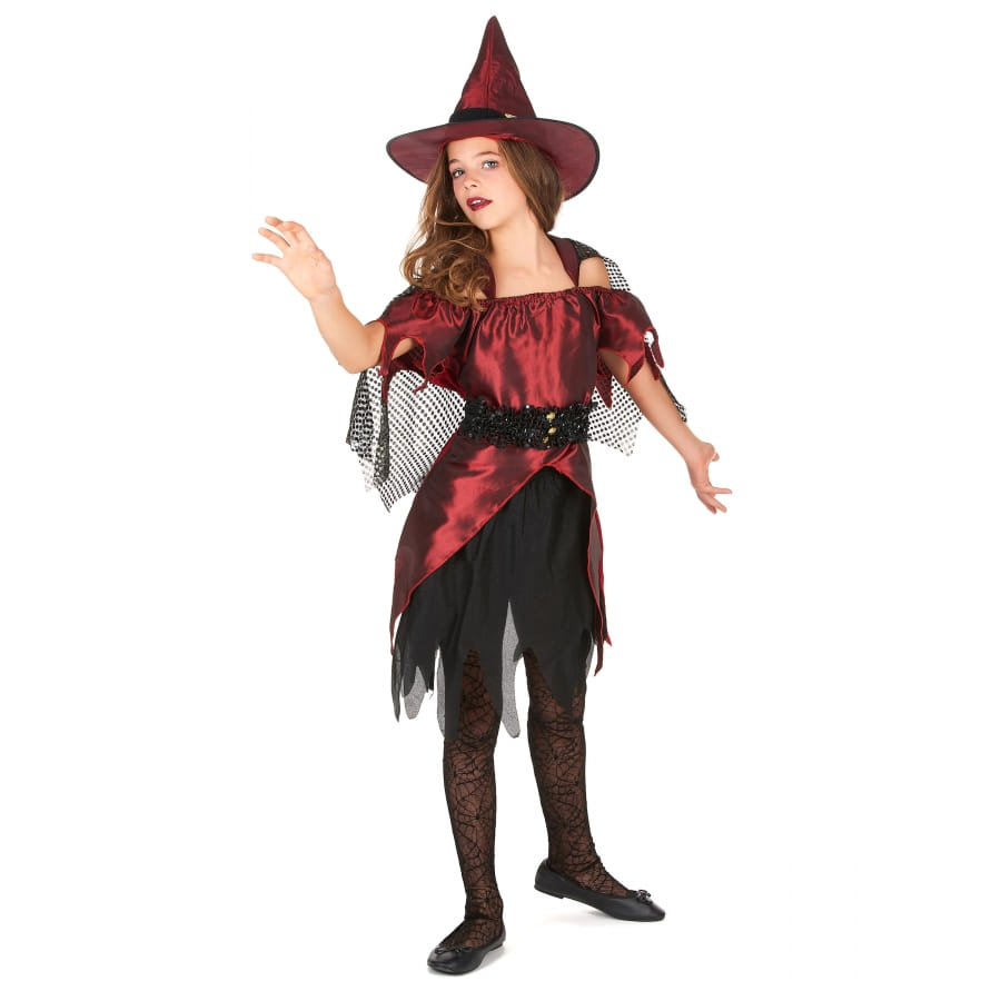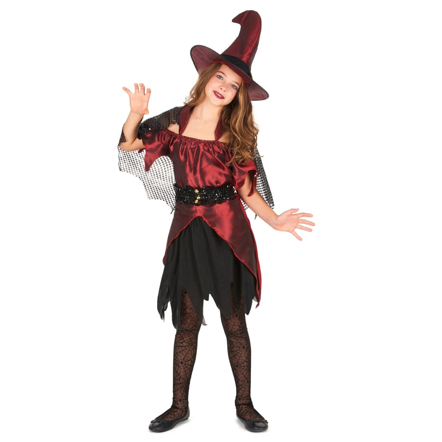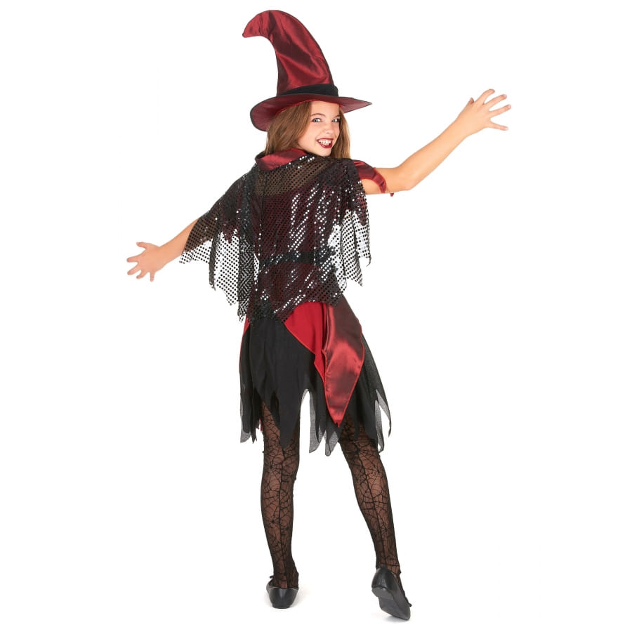 Habillez votre petite fille d'un déguisement de sorcière unique en son genre pour la fête des morts. Pour ce faire, nous vous proposons le costume sorcière rouge noir satiné pour fillette. Cet article reste disponible sur notre site. Il s'agit d'un haut asymétrique de couleur rouge. Conçu dans un tissu satiné, son col tombant, maintenu par un élastique, laisse l'épaule dénudée. Il est pourvu d'une cape à sequin noir à l'arrière. La ceinture reprend la même matière. La jupe noire se compose d'une étoffe imitation feutrine. Ses bords, découpés de façon irrégulière, confèrent du style à l'ensemble. Un chapeau à longue calotte recourbée complète le tout pour un vrai look de petite sorcière !