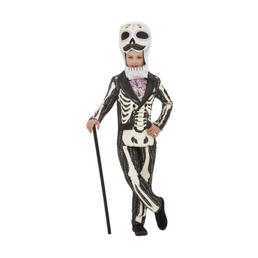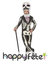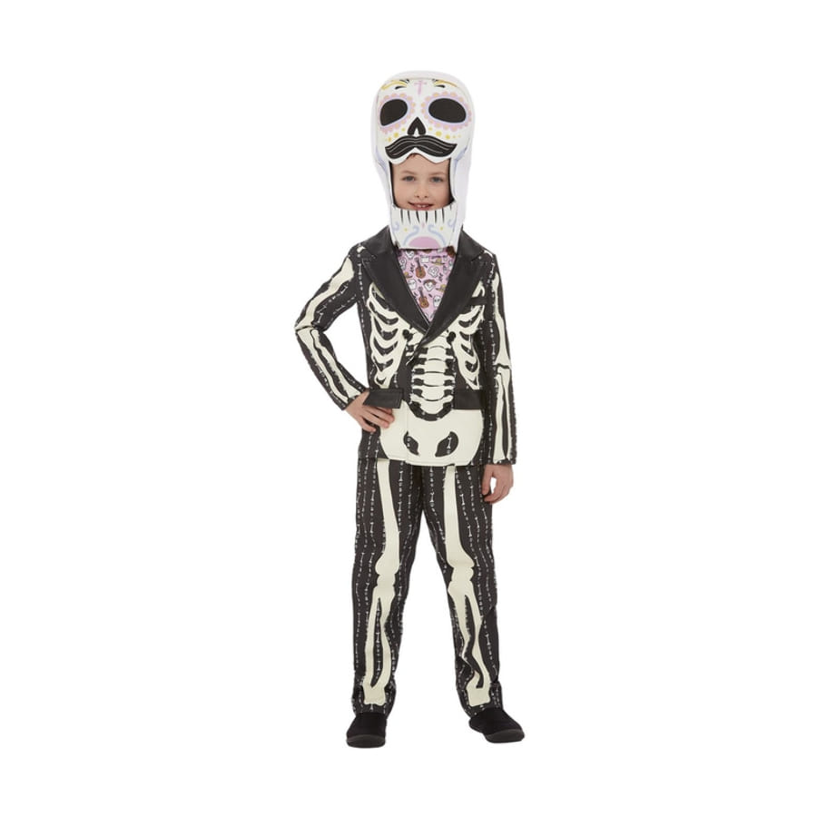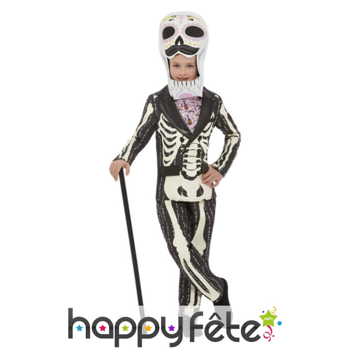 Pour le jour des morts, rien de mieux que ce Costume squelette grosse tête pour garçon.