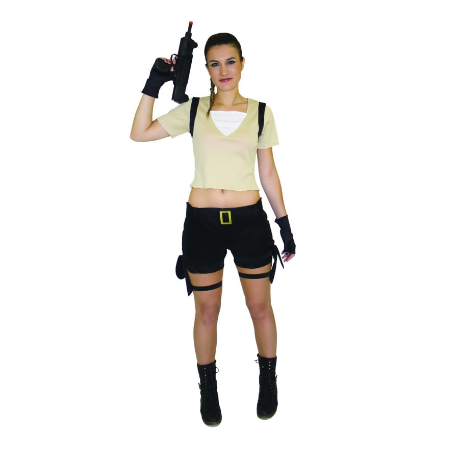 À l'occasion d'une soirée costumée ou d'un carnaval, incarnez le personnage de Lara Croft en enfilant ce costume de tomb raider pour femme.