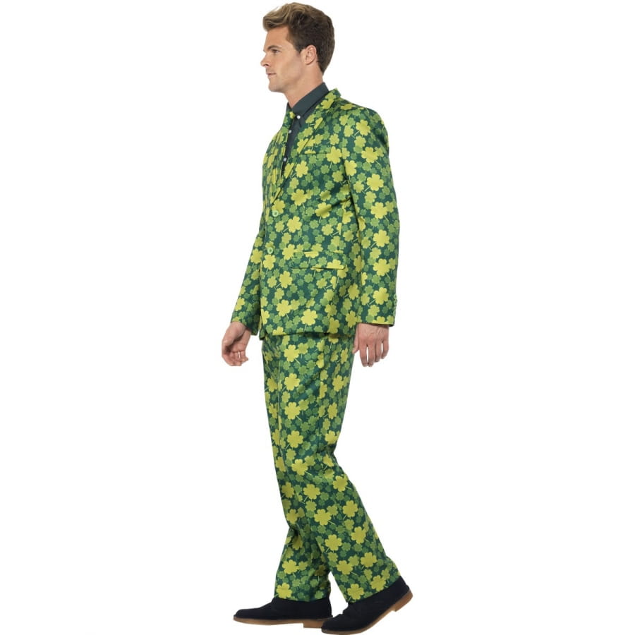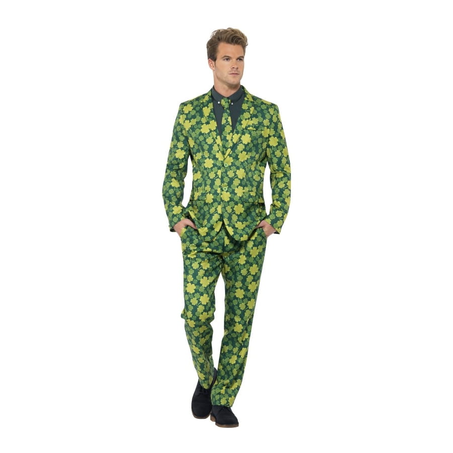 Etes-vous Irlandais, ou tout simplement un Irlandais dans le coeur ? Honorez ce pays avec cet éblouissant costume 3 pièces à l'occasion de la Saint-Patrick. Eh oui, on associe généralement cette fête au trèfle car il a été utilisé par Saint-Patrick afin d'évangéliser le pays. Il est de coutume de porter une note de vert en ce jour. Optez pour ce costume de trèfle unique au monde. Il est constitué d'une veste à manches longues, d'un pantalon, et d'une cravate. Le tout est caractérisé par les motifs de trèfles de couleur verte à 2 tons. Cet ensemble se nettoie uniquement à sec. Il est disponible en taille L (poitrine 106 - 110 cm, entrejambe 83,8 cm) en taille M (poitrine 96 - 101 cm, entrejambe 83 cm) et en taille XL (poitrine 116 - 121 cm).