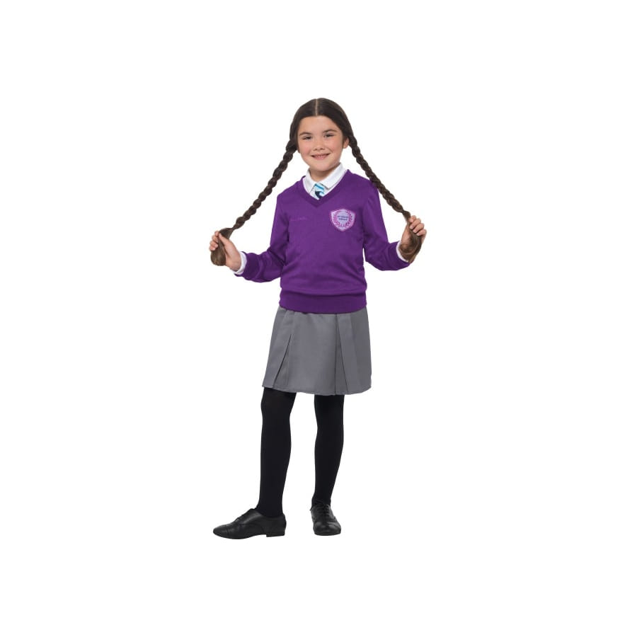 Les jumelles Patricia et Isabelle O'Sullivane intègrent depuis peu le pensionnat pour jeunes filles "St Clare's". Un nouveau challenge commence pour les deux jeunes soeurs. Le costume uniforme de St Clare's pour fille est inspiré de l'histoire passionnante des jumelles de St Clare's. L'uniforme comporte un haut violet avec chemise blanche intégrée et cravate bleue. Il est aussi composé d'une jupe grise à coupe classique qui descend juste au dessus des genoux. L'article est proposé sous différentes tailles selon l'âge de la petite fille, entre 7 à 12 ans. Pour compléter l'ensemble, vous pouvez vous procurer une paire de collants noirs disponible sur happyfete. Il est également conseillé de faire des nattes à votre enfant si vous voulez réussir votre look d'écolière.