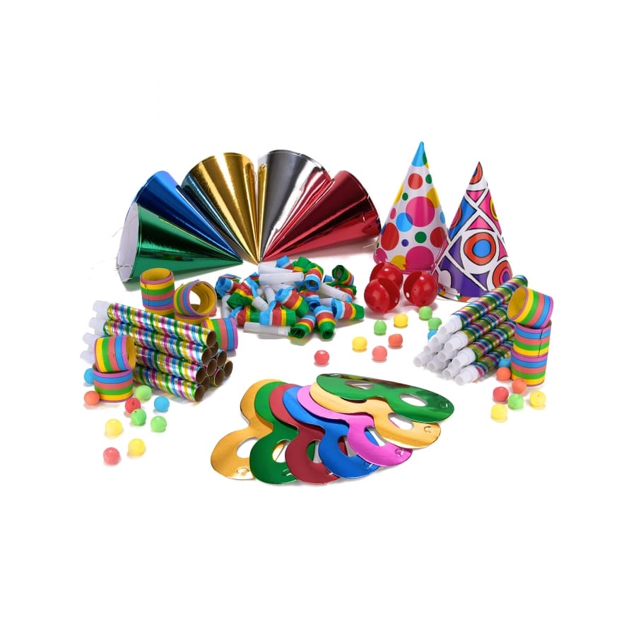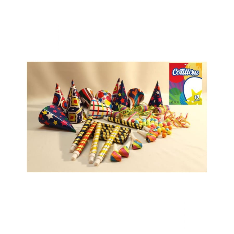 La pochette de cotillons multicolores pour 10 personnes est un assortiment de plusieurs pièces pour faire la fête.