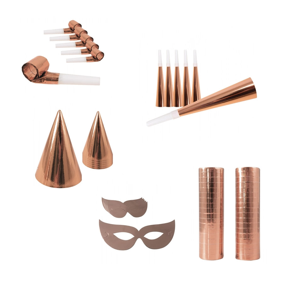 Ces Cotillons roses dorés seront parfaits pour agrémenter un enterrement de vie de jeune futur marié ou pour un nouvel an tout en brillance.