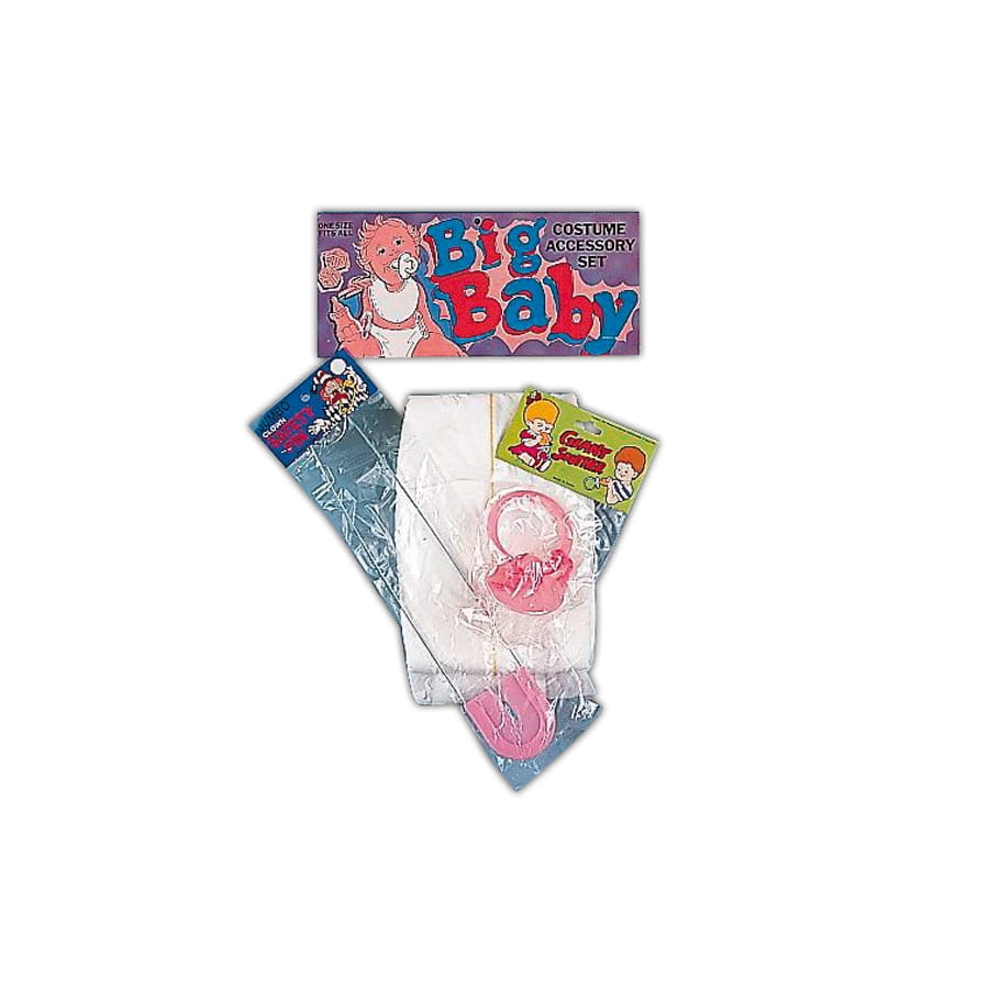 Qui c'est qui est trop mignon ! Vos amis vont éclater de rire lorsqu'ils vous verront porter ces accessoires particuliers. Une couche, une tétine et une épingle à nourrice pour adulte, multicolore, sont proposés ici. Vous pourrez retomber en enfance avec cet attirail. Une petite touche d'humour ? Ce serait bien de détendre l'atmosphère d'un enterrement de vie de garçon / de jeune fille avec ce déguisement ! Vous serez le mignon petit bébé de la soirée ! Il est à noter qu'à la commande, vous n'aurez pas le choix de la couleur du modèle.