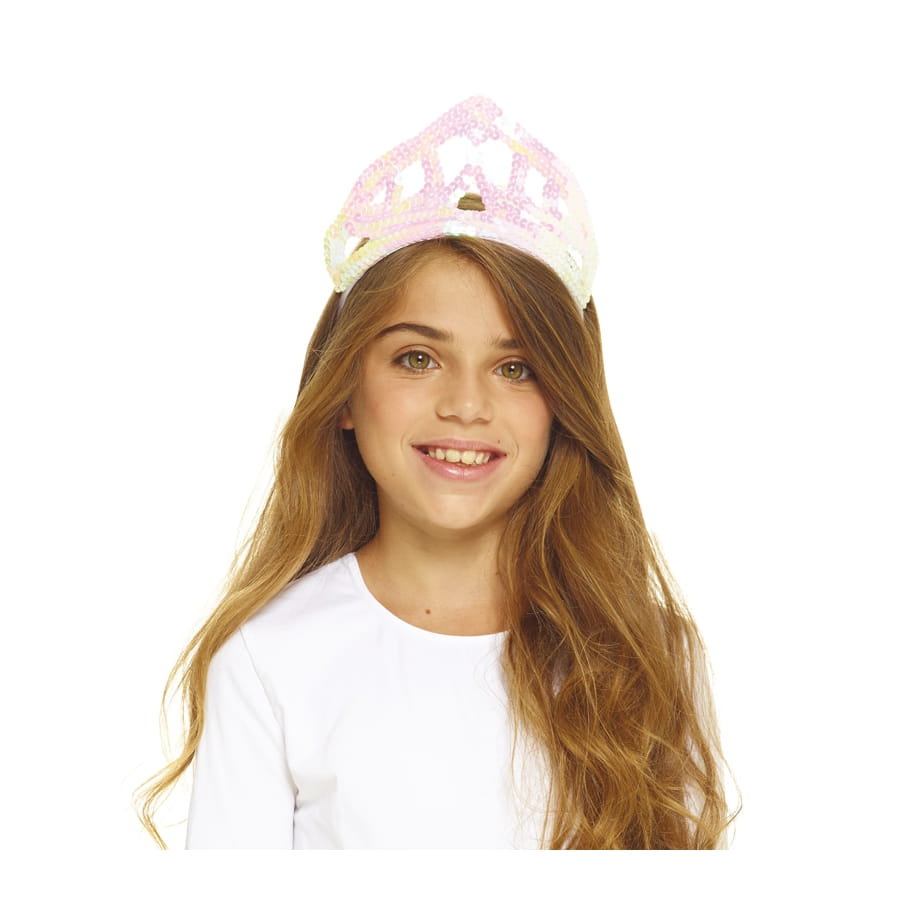Faites entrer votre enfant dans un monde de conte de fée avec cette couronne avec paillettes pour petite fille. A porter comme un serre-tête, elle s'illumine dans des tons de blanc et rose, et est sertie de paillettes partout, de quoi faire également resplendir le visage de la future princesse qui la portera. Nous vous suggérons de voir du côté de nos déguisements pour trouver une tenue adéquate à cet accessoire.