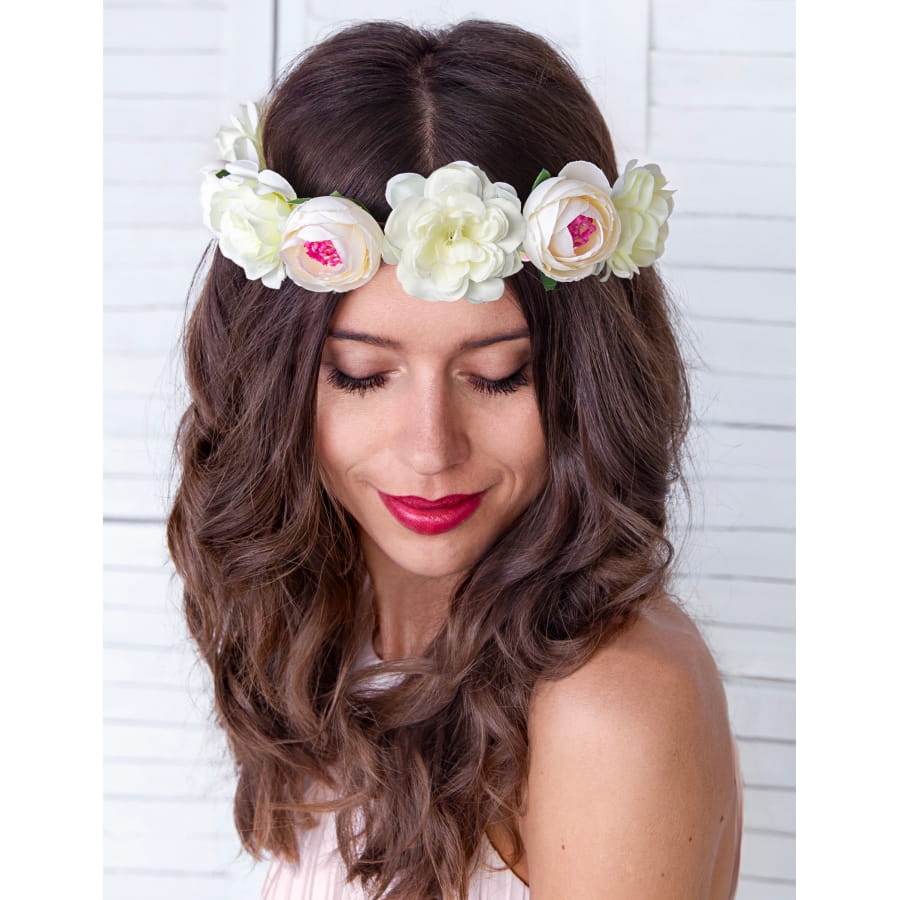Incarnez une heureuse mariée à l'occasion d'une soirée à thème, en arborant la fabuleuse couronne blanche de fleurs.