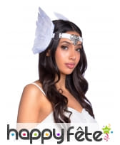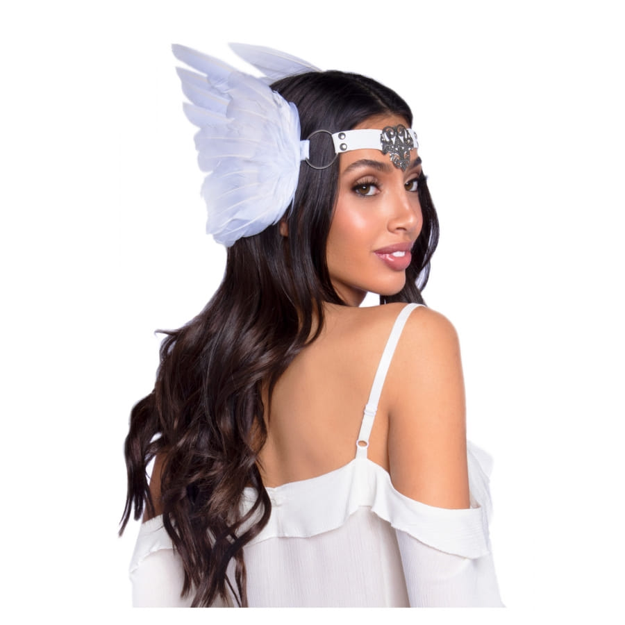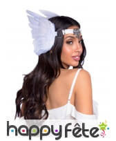 Sur les côtés, il est décoré de deux ailes blanches composées de fausses plumes.