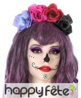 Cette couronne pour cheveux est agrémentée par des mèches en ruban bleu et rose qui descendent jusqu'à vos épaules.