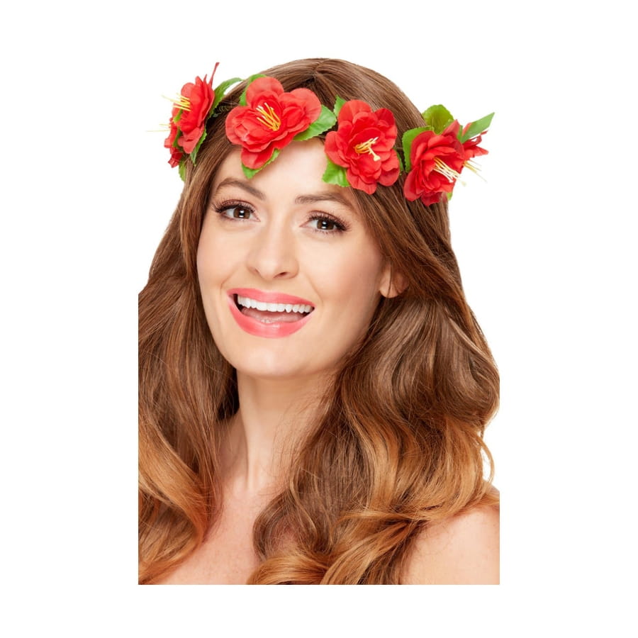 Apportez la dernière touche exotique de votre déguisement de fête, avec la couronne de fleurs hawaïennes rouges.