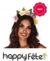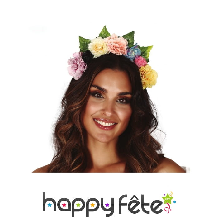 Cette couronne est animée de feuilles vertes et de magnifiques fleurs multicolores, dont les couleurs pastel rappellent la vie pastorale et les moeurs champêtres.