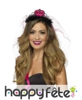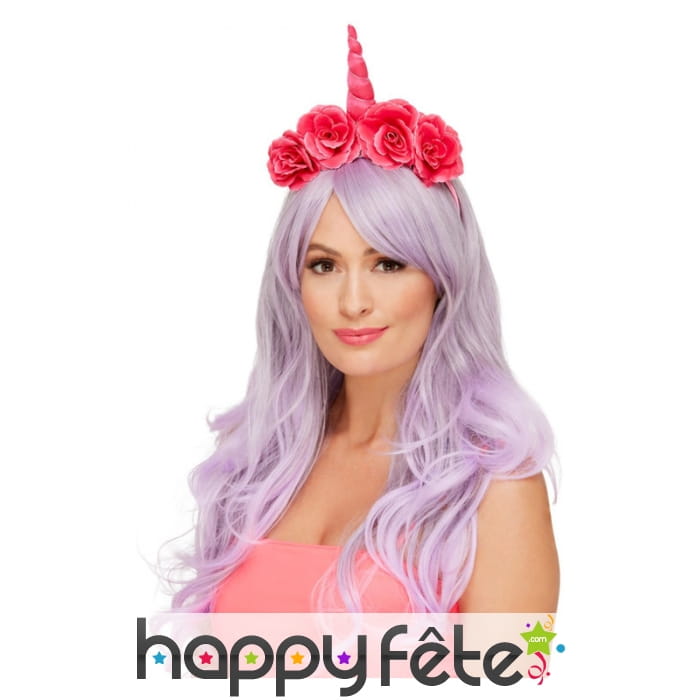 Nous parlons ici d'un serre-tête rose sur lequel sont montées une couronne de fleurs et une corne.