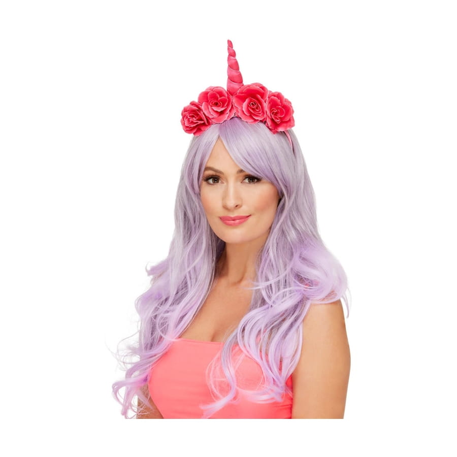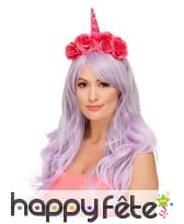 Partez à la chevauchée de monde imaginaires, grâce à la couronne de fleurs rose avec corne de licorne.
