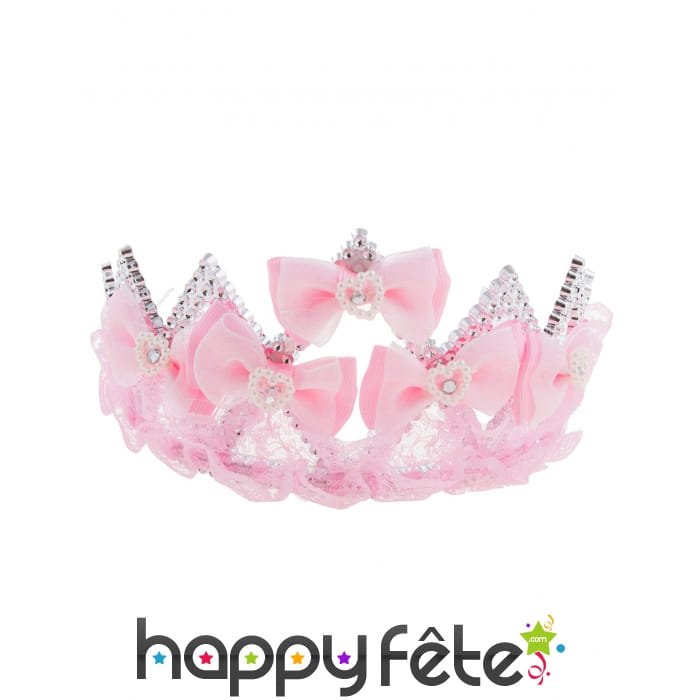 La couronne est faite de noeuds roses très chics ornés de magnifiques coeurs brillants.
