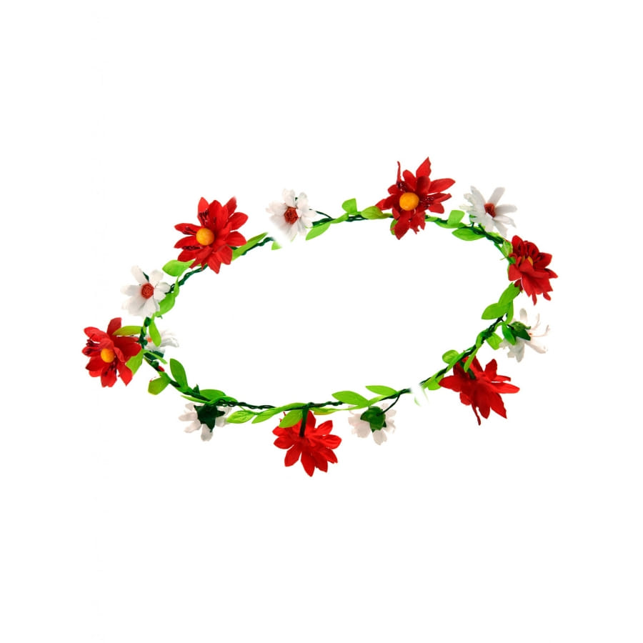 Idéale pour une fête sur le thème hippie, notre couronne de pâquerettes blanches et rouges saura évoquer le style des années 60 à la perfection.