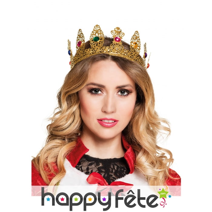 Complétez votre déguisement avec cette couronne de reine en métal doré avec pierres.
